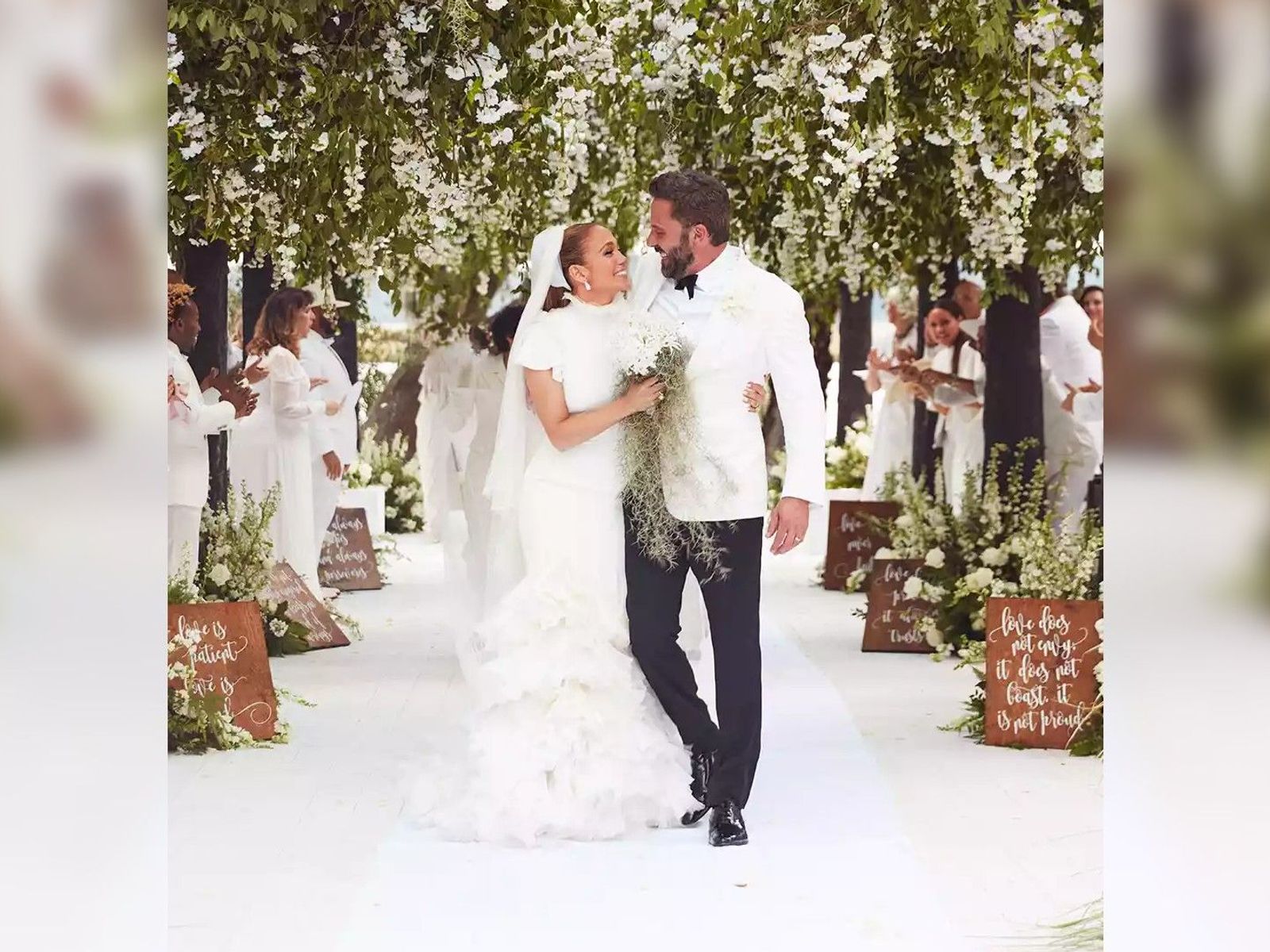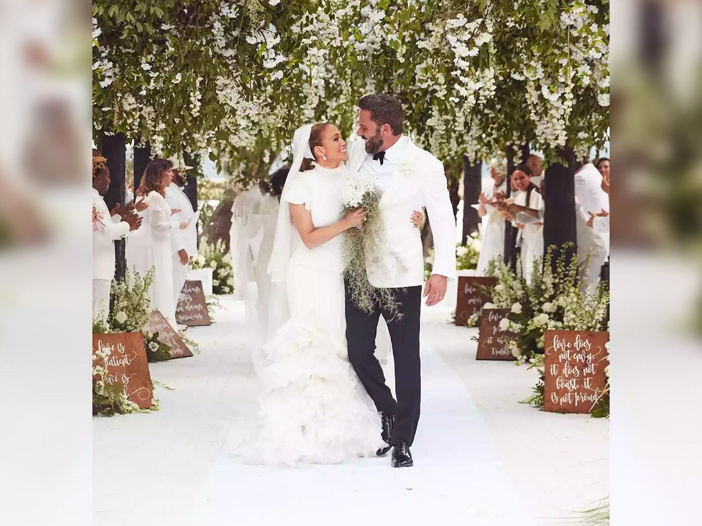 Tutto sembrava perfetto. Jennifer ha definito la rottura del loro fidanzamento 20 anni prima il più grande errore della sua vita. Ben e il suo amore si sono fatti tatuaggi abbinati: lei, un simbolo dell'infinito con i loro nomi; lui, frecce incrociate con le iniziali B e J. Affleck si è lasciato andare a elogi sul genio di Jennifer, che lo ha aiutato a prepararsi per il suo ruolo nel film Nike "Air" (il primo progetto della Artists Equity, la società fondata da Affleck con Matt Damon, in cui entrambi hanno recitato). E Jennifer non smetteva di parlare di che padre straordinario fosse suo marito, non solo per i suoi figli, ma anche per i suoi.I fan mi chiameranno sempre Jennifer Lopez. Siamo marito e moglie. Ma ufficialmente, sono la signora Affleck. E ne sono orgogliosa.
