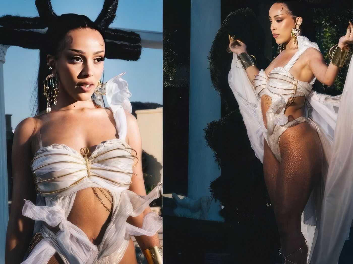 Doja Cat è un'avida sperimentatrice. I suoi outfit, acconciature e trucco audace sono emulati non solo dai suoi fan ma anche dai trendsetter della moda. Anche il suo fisico, che mantiene con allenamenti in palestra, è ammirabile.