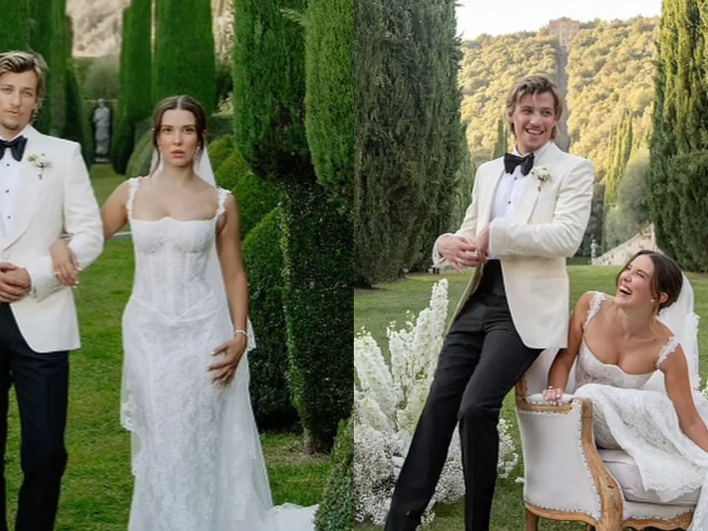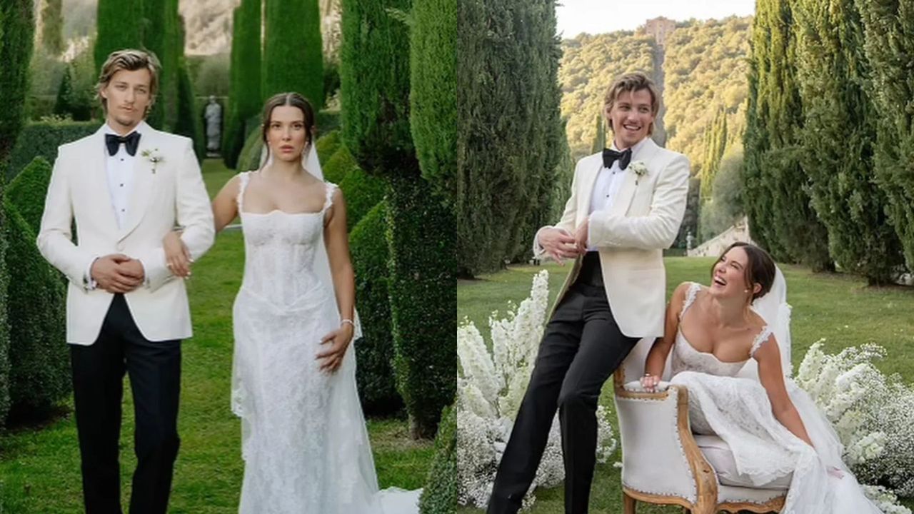 La vera favola si è svolta quell'autunno in Toscana. La coppia ha organizzato un matrimonio sontuoso in stile barocco italiano nella Villa Cetinale Roman del XVII secolo. Millie ha indossato tre outfit diversi: prima un abito in pizzo di Galia Lahav, poi una creazione vintage Valentino del 1993, e infine è apparsa all'afterparty in un mini dress di raso con un papillon preso in prestito dal neo-marito.