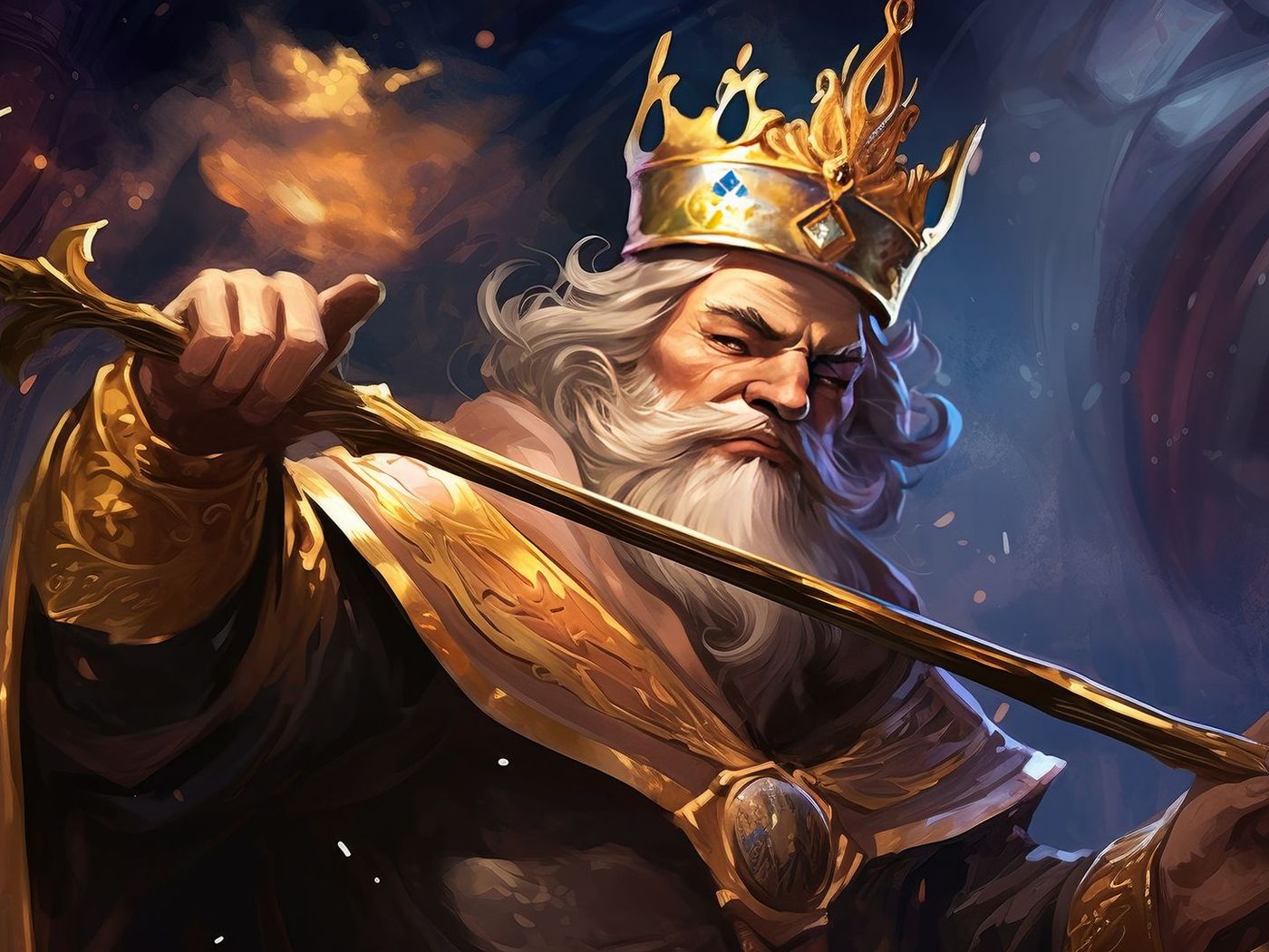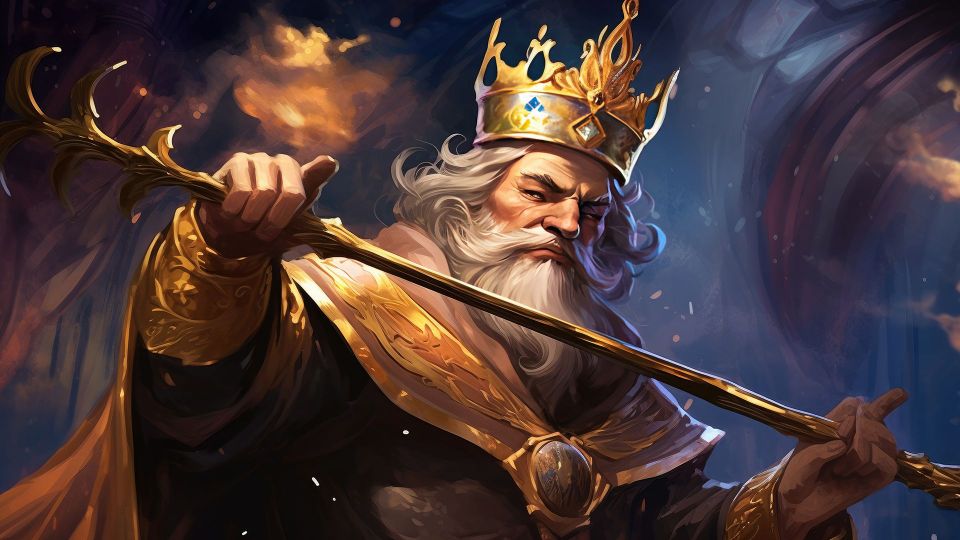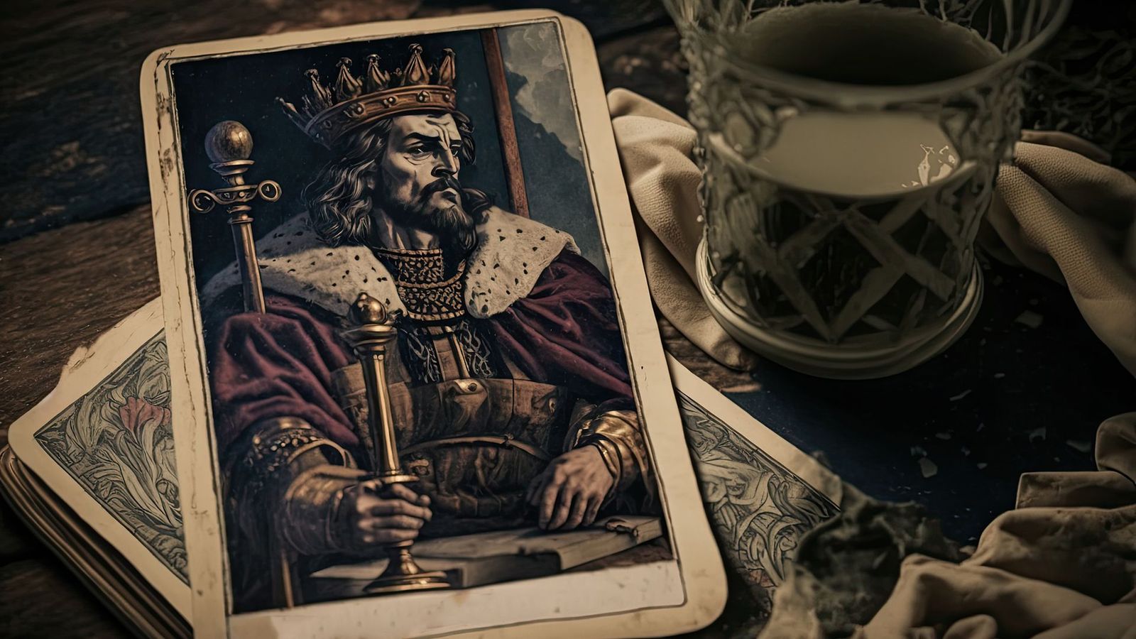 Il Re di Bastoni è un sovrano maturo rispettato dai suoi sudditi. Il suo archetipo rappresenta la saggezza di vita, il fiuto per gli affari e la prosperità economica. Chi sceglie questa carta possiede senza dubbio doti di comando naturali.