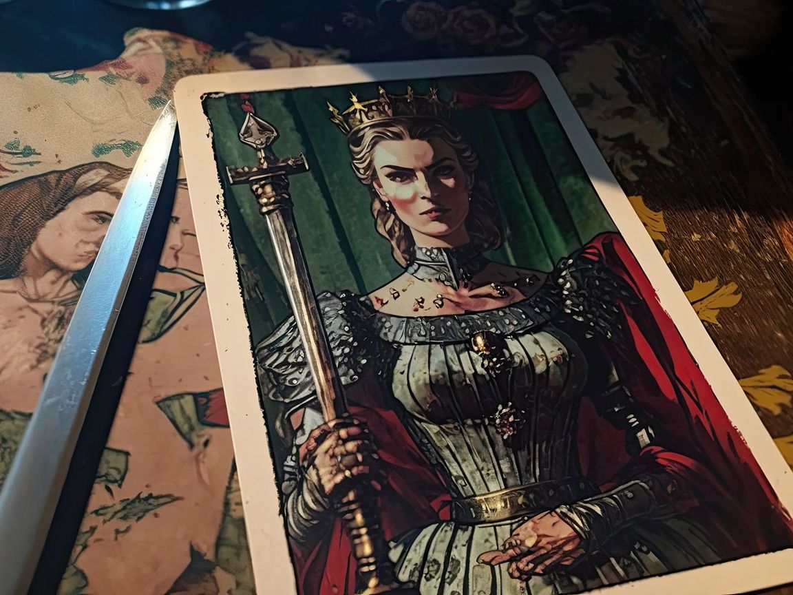 Quando appare in una lettura, la Regina di Spade ti invita a pensare e sentire come lei. Ovvero: accettare la verità anche quando è scomoda, giocare sempre secondo le regole, resistere a lusinghe e inganni, e non aver paura di ridere di se stessi.