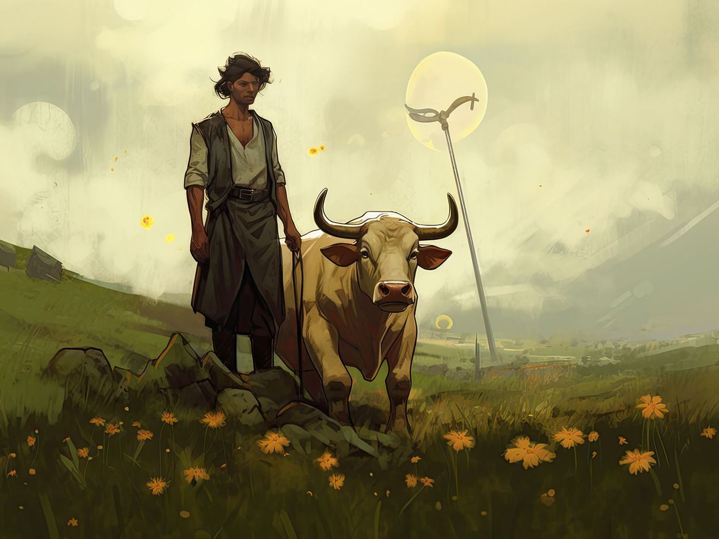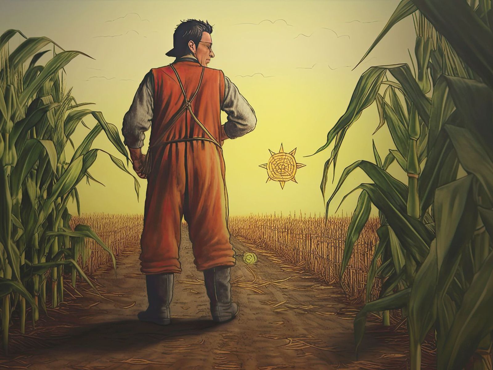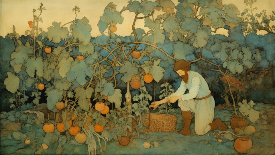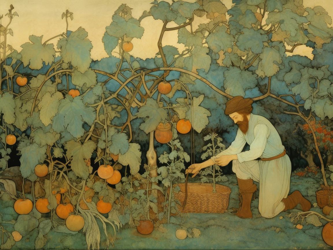 - Il contadino appare provato e meditabondo, rivelando le difficoltà e le incertezze del suo lavoro. Si domanda se il raccolto sarà all'altezza delle aspettative e quale sarà il guadagno.