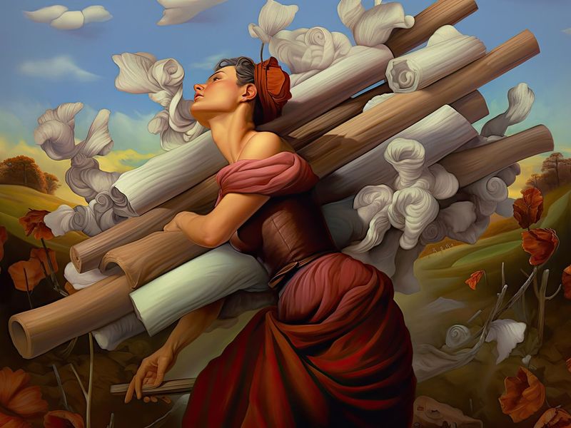 Il Dieci di Bastoni è una carta dall'atmosfera pesante e opprimente. Spesso si manifesta a imprenditori e stacanovisti che lavorano senza sosta. La carta mostra un uomo che cerca di portare dieci pesanti bastoni da solo. Lo sovrastano completamente, offuscandogli la vista al punto che non riesce nemmeno a vedere dove sta andando. Per lui, non c'è altro che fardelli e responsabilità.Molti di noi potrebbero riconoscersi in questa figura. Spesso ci carichiamo di troppi impegni, cercando di tenere il passo su tutti i fronti. Pensiamo che il sollievo sia dietro l'angolo, dobbiamo solo resistere fino al weekend, alle ferie o alla fine del semestre... Ma il tanto agognato riposo non porta sollievo: il sovraccarico persiste.