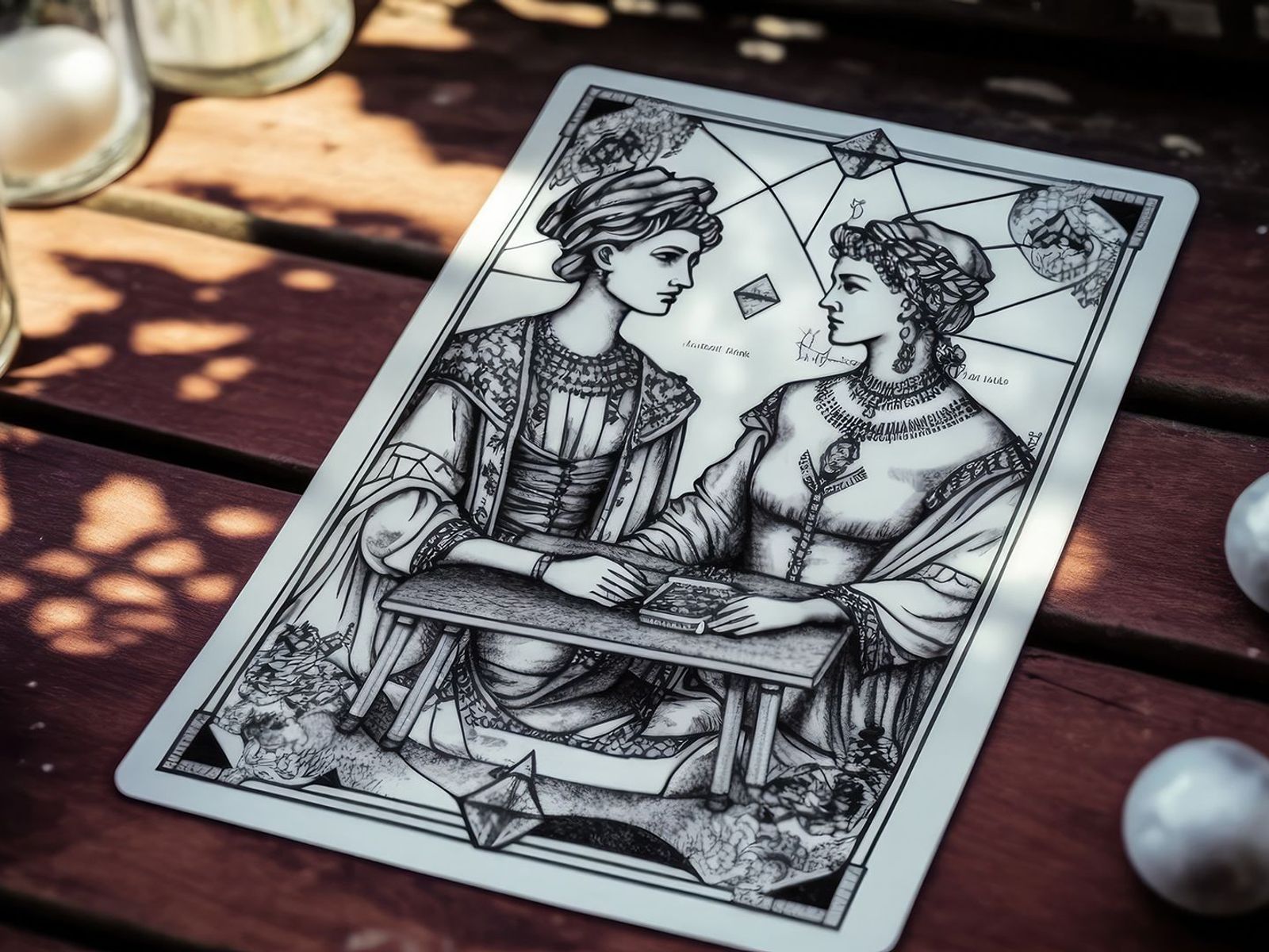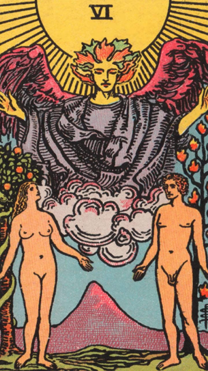 La carta degli Amanti non riflette soltanto le relazioni romantiche, richiamando l'archetipo immortale di due cuori innamorati il cui amore può superare ogni ostacolo (Orfeo ed Euridice, Ulisse e Penelope, Romeo e Giulietta). Incarna armonia e unità come elementi essenziali del cammino esistenziale.