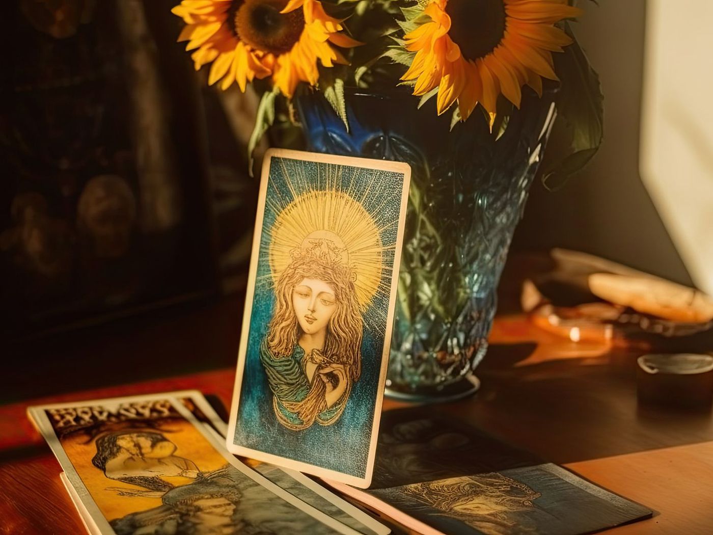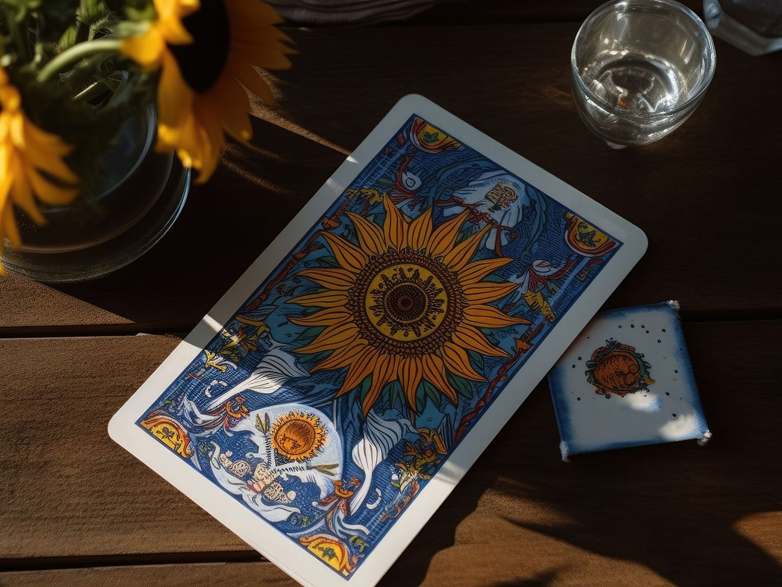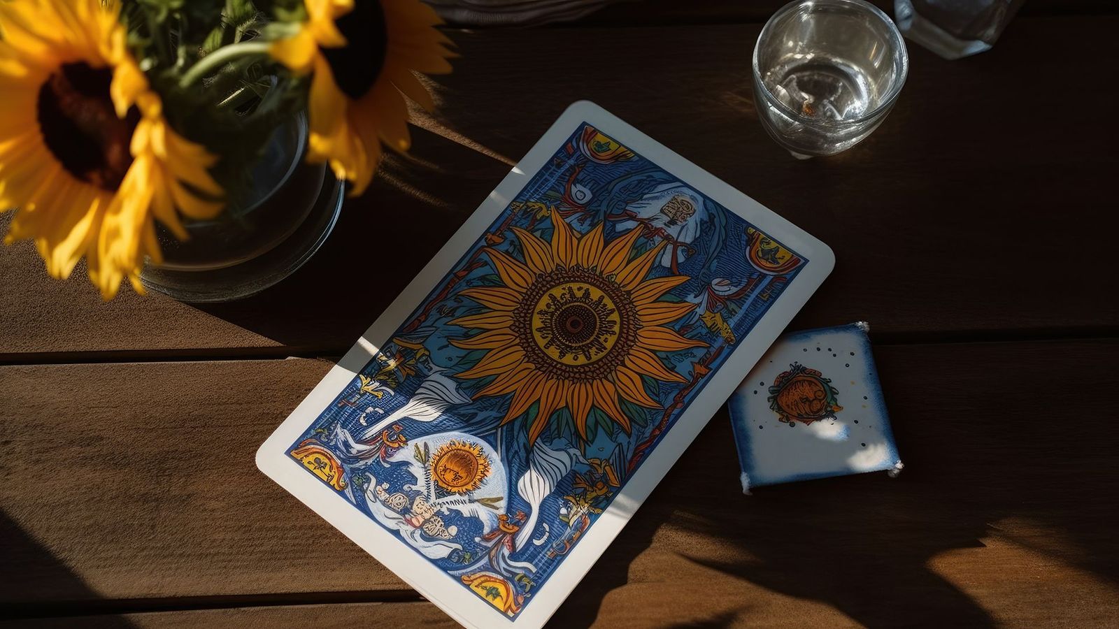 I girasoli simboleggiano crescita e prosperità, oltre alla vicinanza al divino. I raggi solari che irradiano dalla carta rappresentano vita, energia e forza vitale. Ci rammentano l'importanza della vita stessa e la necessità di utilizzare l'energia solare per la nostra evoluzione e crescita.
