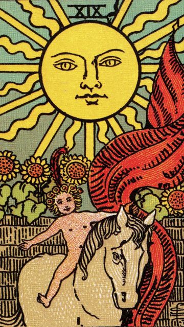 La carta del Sole ci dice di non temere la fine - perché dopo arriva un nuovo inizio, un nuovo ciclo. In questo senso, la carta risuona con l'arcano della Morte, ma mentre la tredicesima carta parla di rinnovamento attraverso trasformazioni inevitabili, spesso dolorose per il consultante, il Sole dona esclusivamente momenti luminosi e gioiosi.